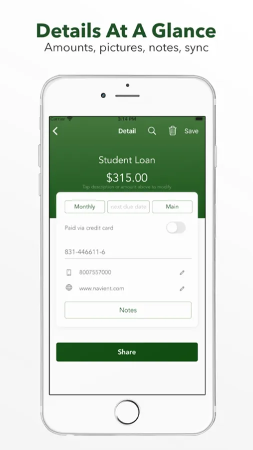 Sometimes you don't want to forget about the money you spent. Add a picture gallery to any transaction and keep notes as well. Also remember things and moments that weren't about money spent, just add the item as Priceless.