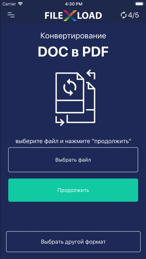 1. Выберите целевой формат файла из предложенного списка Выберите исходный формат и затем загрузите файл