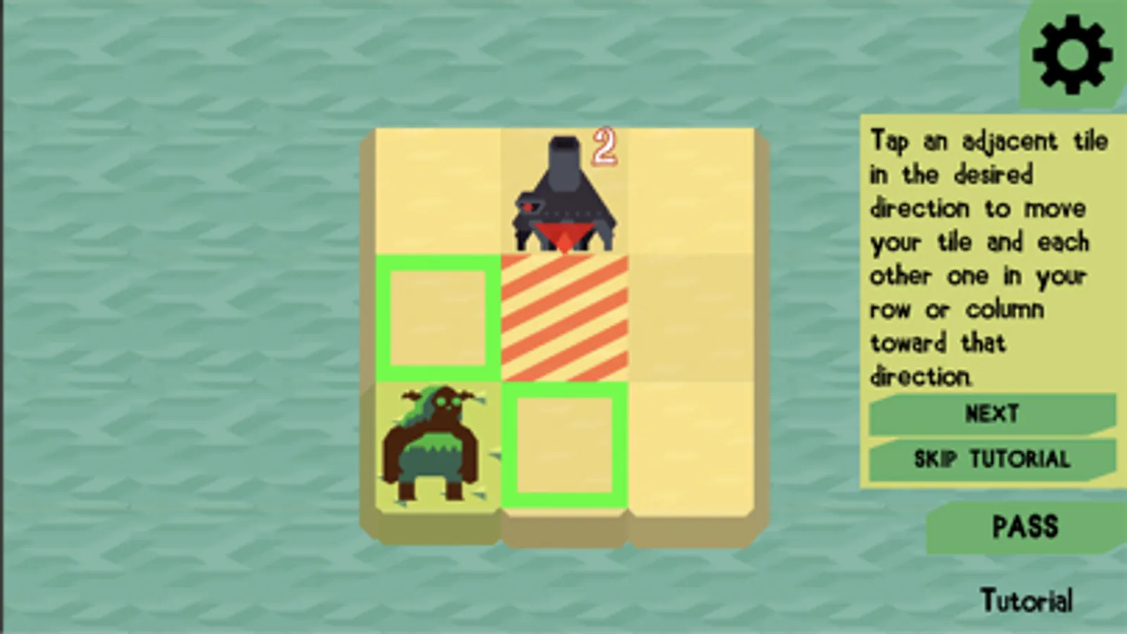 Whenever you move, each enemy's action timer decreases by one. When it reaches zero, they attack the endangered space(s) in front of them. Destroy enemies or tiles by pushing them off of the edge or into chasms. Destroy all enemies without dying to complete the level!