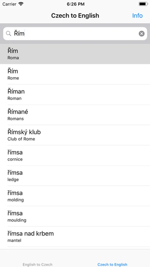 Open English to Czech and Czech to English dictionary. Based on the famous FDL dictionary data available at the Free Dictionaries project. No internet access is required for translation or pronunciation feature.