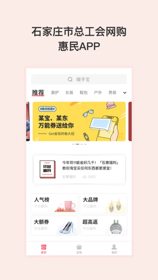 石惠福利是石家庄总工会为会员朋友们精心打造的一款网购惠民APP。