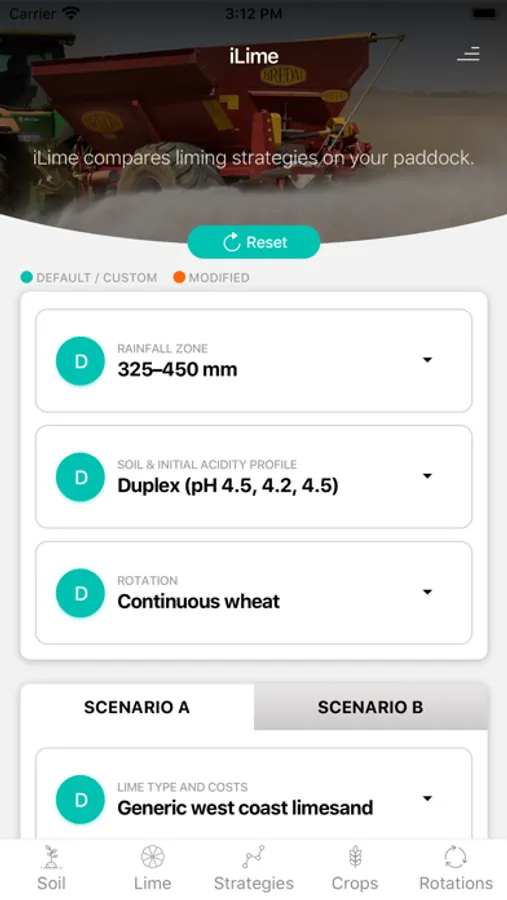 The Optlime spreadsheet models the main factors related to soil acidity. It was developed as part of the 'Time to Lime' research programme, 1996—2001, using established principles of soil acidity and results from field and laboratory experiments carried out in WA. It has been tested against subsequent research data and was thoroughly reviewed in 2008. iLime has also been tested using data collected over the past 10 years (paper in preparation).