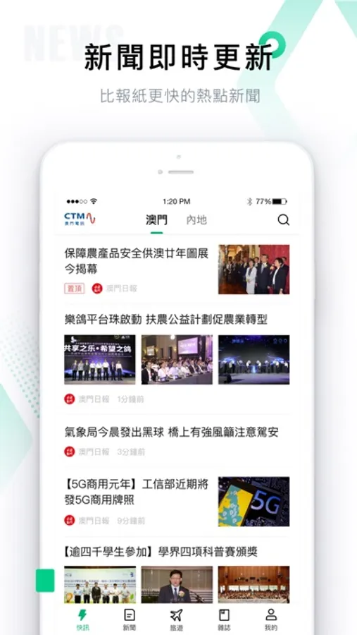 「澳門快訊」提供的不是報紙,而是即時新聞!「澳門快訊」正式取得主流媒體授權,包括澳門及內地權威媒體,以即時新聞方式呈現在您眼前,讓您快速掌握不同視角的新聞。