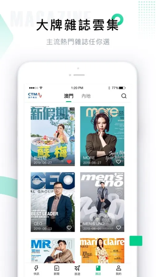 「澳門快訊」為您提供第一手的澳門資訊。聚合澳門、內地主流新聞媒體、品牌雜誌、旅遊指南書,提供即時、多角度的閱讀樂趣。