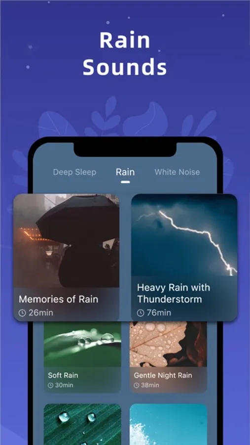 - Sleep Sounds - White noise with different themes can improve your sleep quality, like Rain Sounds, Bonfire, Night Song, Rainstorm, Seaside, Setting Sun, Ocean Wave sounds, etc.