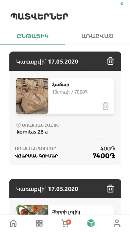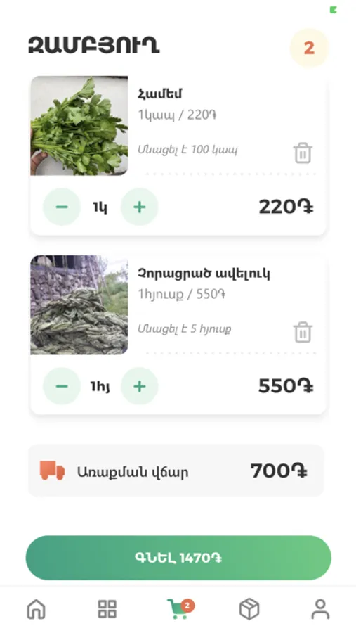 Buy agricultural products, pay with cash or card and the products will be delivered right to your door, within two working days.