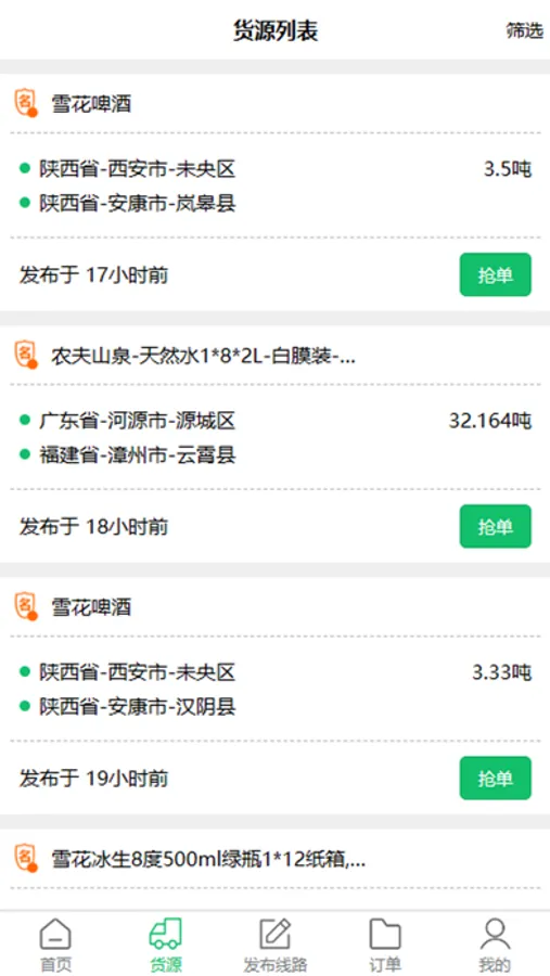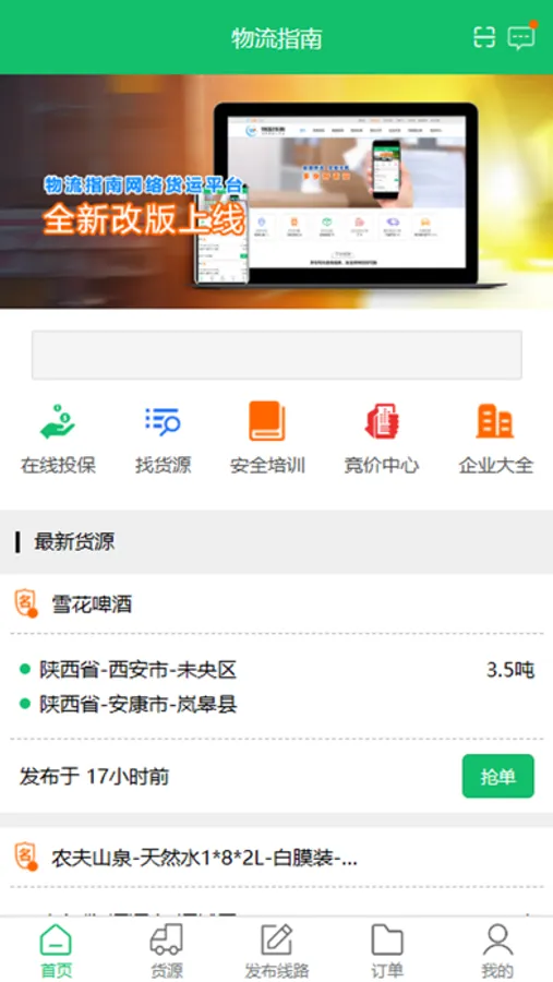 •发布货源:发布货源信息,承运方找单接货,促进线上运输。