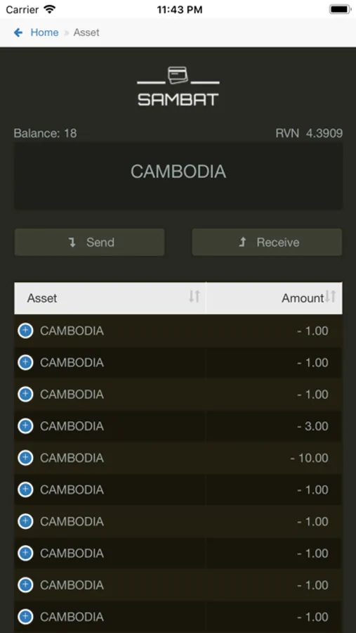 Sambat is a decentralized application (DaPP) used to store, transfer, and manage digital assets on the mobile phone. This DaPP is connected to Ravencoin blockchain to transfer the asset and get asset information. It is the non-custodial wallet. Every user can fully control the asset.
