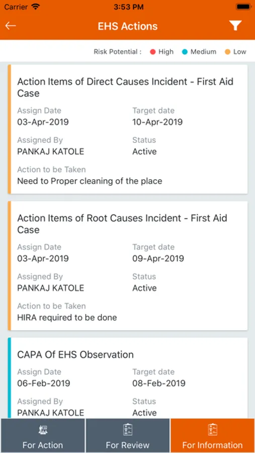 MCL EHS Portal App provides a focus on key safety aspects - Safety Inspection, observation and reporting - for better HSE ( Health, Safety and Environment ) outcomes.This application is designed to help it's users to report any kind of Near-miss,Hazard Incident, Safety Observations and Workplace Inspection Reports within their mobile devices.
