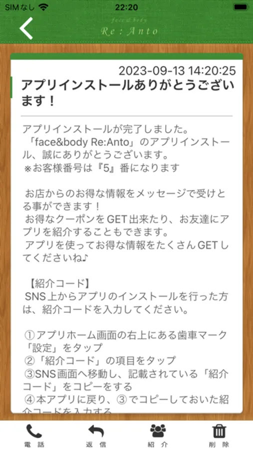 リアントのアプリをSNSを通じてお友達に紹介する事ができます。