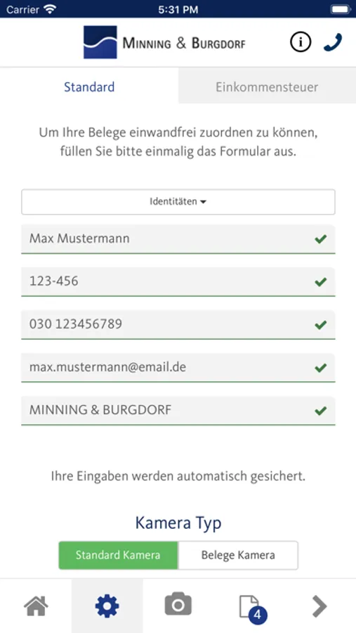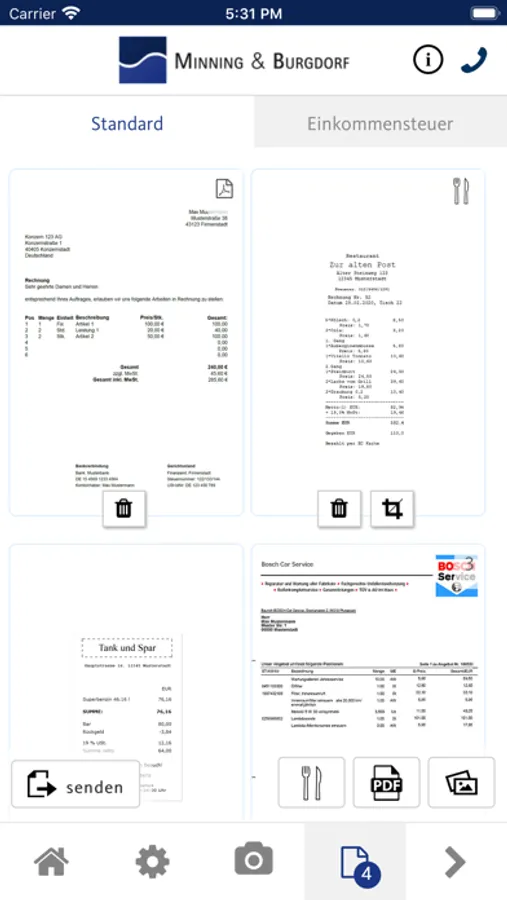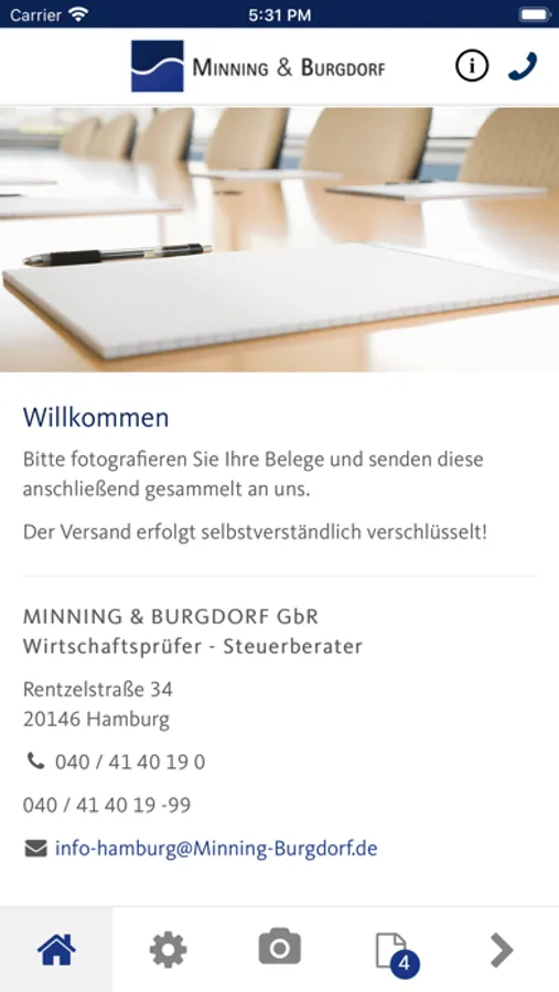 Mithilfe dieser App können Belege, Dokumente und andere Schriftstücke schnell, sicher und komfortabel an Minning & Burgdorf Wirtschaftsprüfer - Steuerberater gesendet werden.