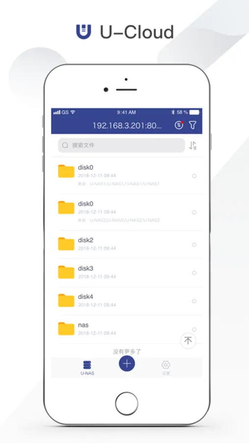 U-NAS Cloud is an application for managing documents stored on U-NAS. It is a convenient mobile tool for collaborating and sharing files in an efficient way. It allows remote file access through multiple devices and provides the ability for managing files on U-NAS server. It also supports playing audio from the server without downloading the file. U-NAS cloud adopts WebDAV protocol for file transfer. U-NAS server is needed for the full function of U-NAS Cloud.