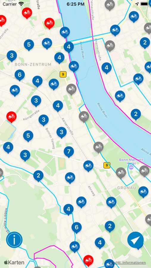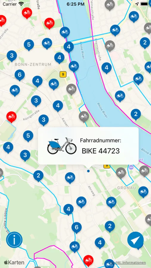Bonn Bike ist eine App, die den Live-Standort der frei verfügbaren SWB Räder in Bonn anzeigt.