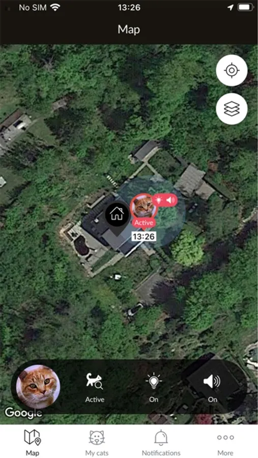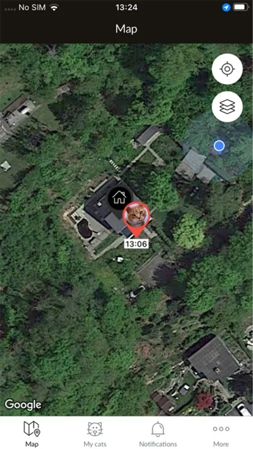 The interactive map provides an overview of all your cats wearing the KADDZ GPS collar. You can switch between satellite image and street map and zoom in or out. When clicking on the cat image you will receive more accurate location information on your pets’ whereabouts.