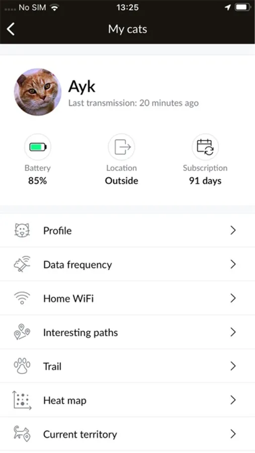 If your cat enters the danger zone or leaves its territory, you will immediately receive a push message.