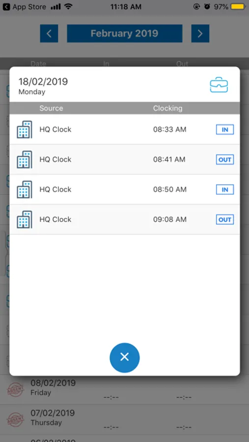 - Full view on employees’ attendance status of check-in and check-out on daily, weekly, or monthly basis