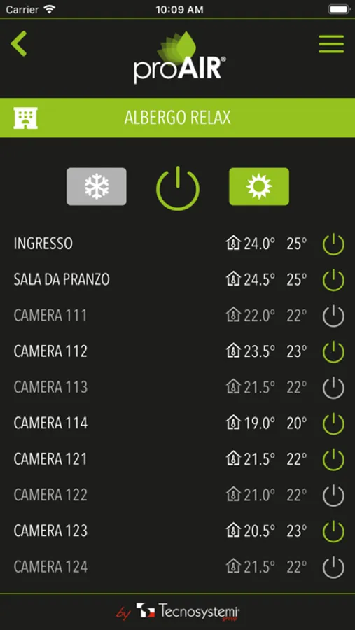 - Set the system's operating mode (also for internal ducted systems if you have the Tecnosystemi communications protocol) 1