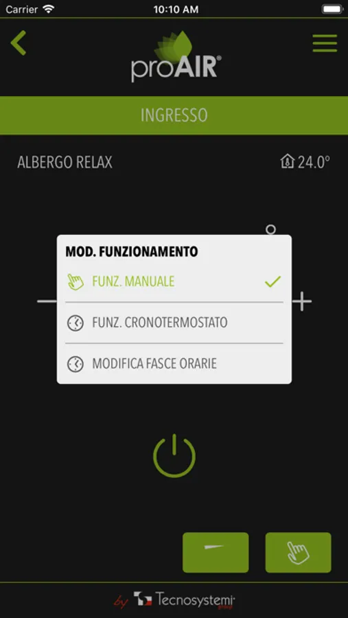When you return home or enter the office, you will find the comfort you seek by using the simple adjustments that only a precise, rapid and reliable system such as ProAIR can provide: just modify the set time slot or turn the system on manually as and when required to avoid unwanted consumption and save energy
