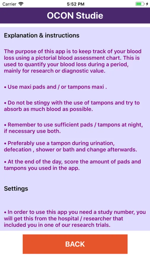 This app is a menstrual calendar with the aim of supporting research into the growth of fibroids. It is not possible to use this app if you do not participate in the Ocon study. For questions about the app, contact the researchers.