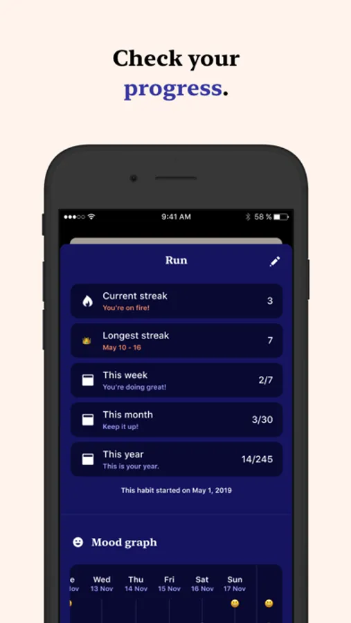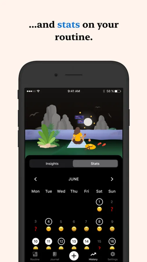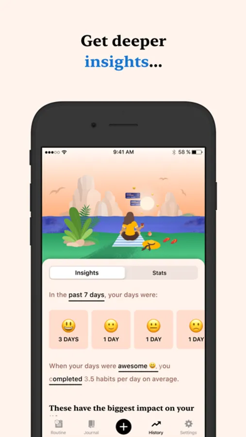 Get insights & stats on your routine and on how much you've evolved with elegant and comprehensive reports.