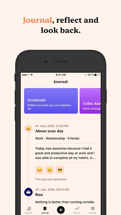 Mood tracking is a technique in positive psychology that includes the tracking, recording, and analysis of a person’s mood. With that in mind, Tangerine not only helps you reflect on your days, but also realise what activities in your life make you happy or sad.