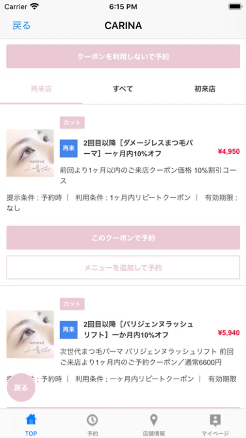お得なクーポンが配信されます。ネット予約時にクーポン利用での予約も可能なので来店時もスムーズに施術頂けます。