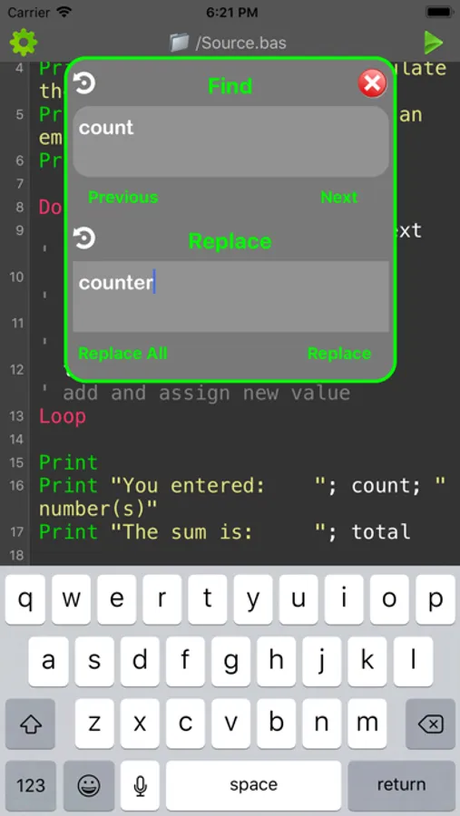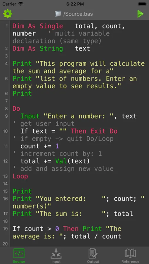 Write BASIC code directly on your iPhone, iPad and iPod Touch! This app is ideal for learning and testing code snippets!