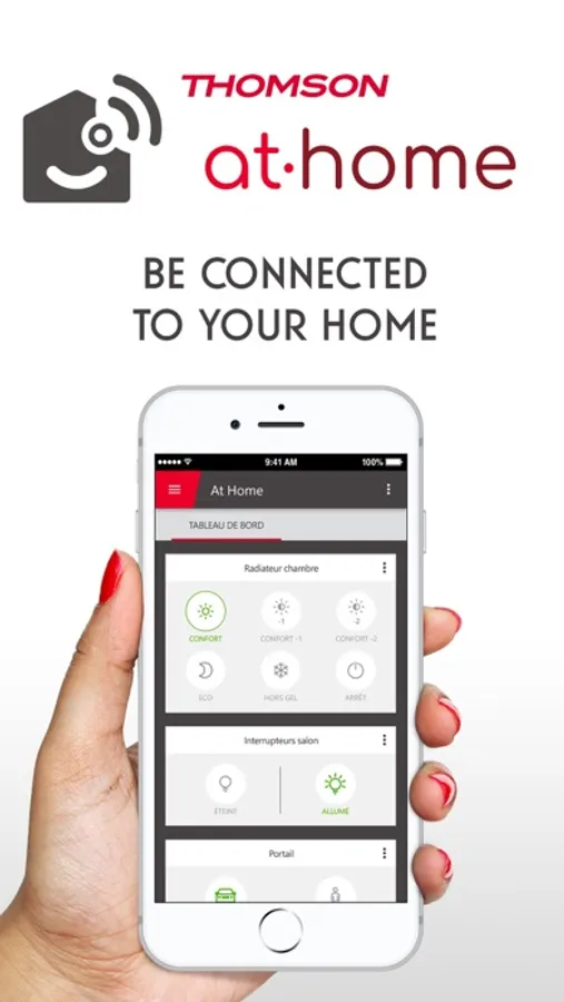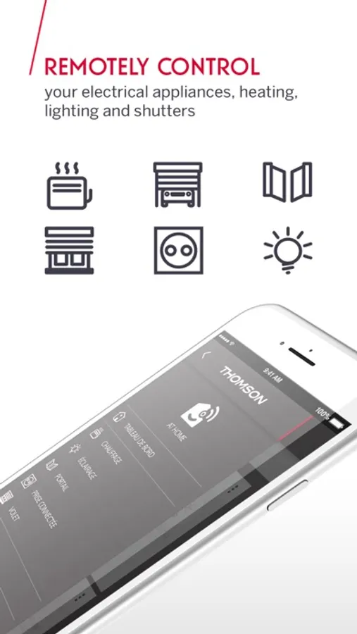 The connected products compatible with At Home ecosystem can be controlled from a mobile application or by voice commands using Google and Alexa. Control your lighting and electrical devices or control your rolling shutters, blinds and other portals remotely from your smartphone.