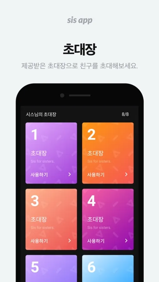주변 친구가 시스에 가입할 수 있게 초대장을 보낼 수 있어요.