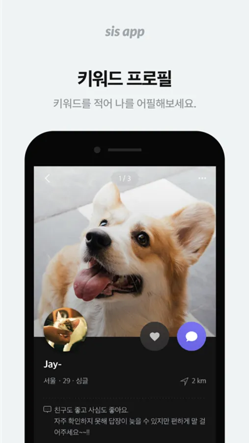 프로필에 성격, 좋아하는 것, 관심사 등 키워드를 적어 나를 어필해보세요.