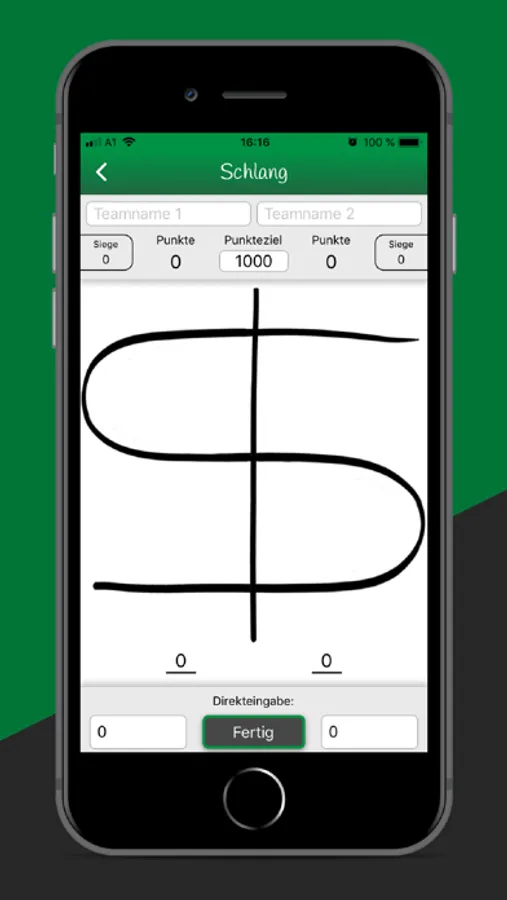 Zum andern gibt es die Möglichkeit, einen Schlangenjass zu schreiben. Bei der Schlange werden die Punkte jeder Spielrunde zusammengezählt. Vorteil gegenüber dem Papier ist, dass eine direkte Eingabe möglich ist, was das Schreiben um einiges erleichtert.