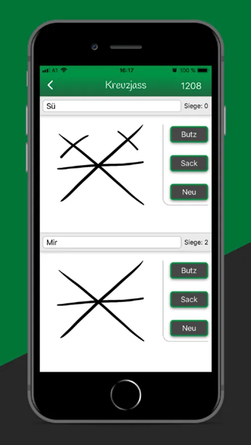 Jass Butz ist eine App, mit der in Vorarlberg die zwei populärsten Jasse geschrieben werden können.