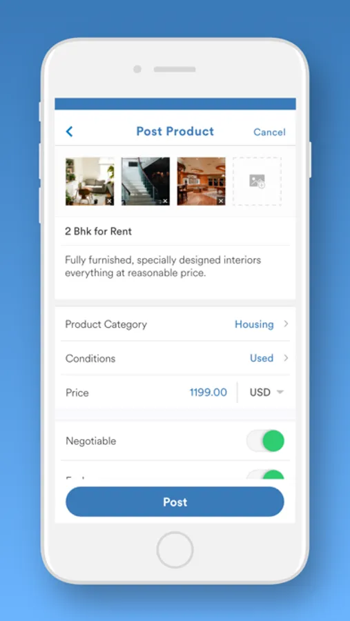 Simply have to snap a photo, add a description and publish the item or service you are offering!