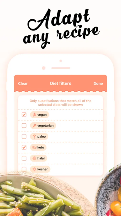 Whether you're cooking for someone with special religious or dietary needs, run out of one of the ingredients in the recipe, or just trying to eat healthier, this app has got you covered.