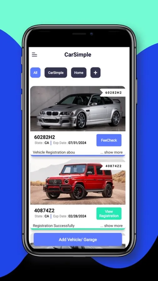 Finally, an app that makes renewing your car registration easier! Skip the line and renew your tags right through the CarSimple app. Simply add any vehicle to your virtual garage, enter your registration information, and in just a few taps and a secure payment your tags are on their way to your doorstep. Waiting in agonising lines to renew your registration is a thing of the past. Keep your plates up to date with friendly reminders and a simplified process.