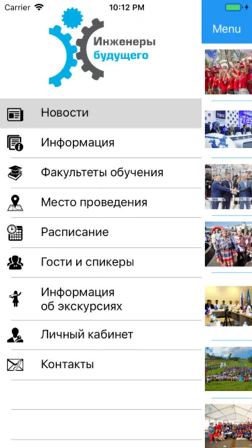 В приложении "Инженеры будущего" вы можете посмотреть последние новости форума, узнать о гостях и спикерах форума, информацию о факультетах образовательной программы, общее расписание обучающихся групп, посмотреть ваше персональное расписание, корпоративный и личный рейтинг, узнать о предстоящих экскурсиях, получить контактную информацию и посмотреть интерактивную карту с вашим местоположением на ней.
