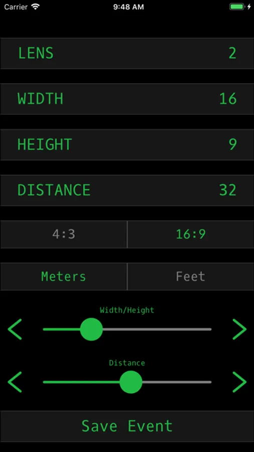 - Calculate the right lens factor by the desired size and distance or vice versa.