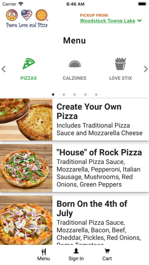 With the Peace Love & Pizza app you can: