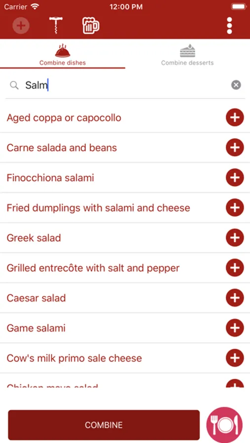 - The Multi-course Pairing makes it possible to find a wine that pairs perfectly with a single dish or with the entire meal. Insert all the dishes you want to pair and then click on “COMBINE”.
