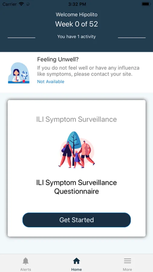 Enrolled participants can use the mobile app to record and report influenza like symptoms during the study. Participants can also contact their study site through the app, receive study related reminders and view upcoming appointments.