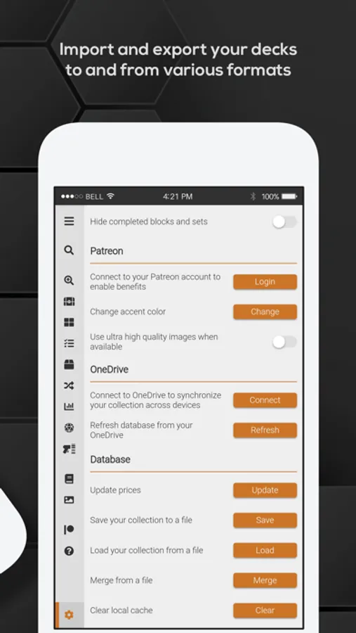 I+ mport and export your decks to and from various formats (tappedOut, .csv, .txt, etc.)