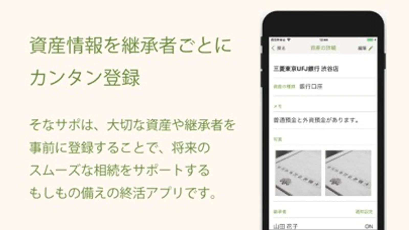 そなサポは、あなたの想いまで相続できる終活アプリです。