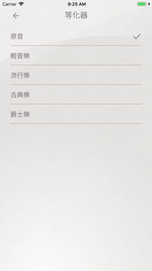 4.等化器設定: 專屬5種音效模式 (原音、輕音樂、流行樂、古典樂、爵士樂),可以依照個人喜好挑選,讓您的耳朵享受最舒服的聲音效果。