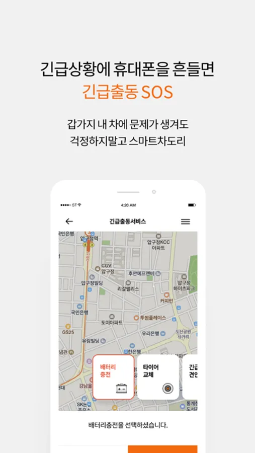 -긴급출동 : 갑자기 내 차에 문제가 생겼을 때 흔들어 주면 바로 출동