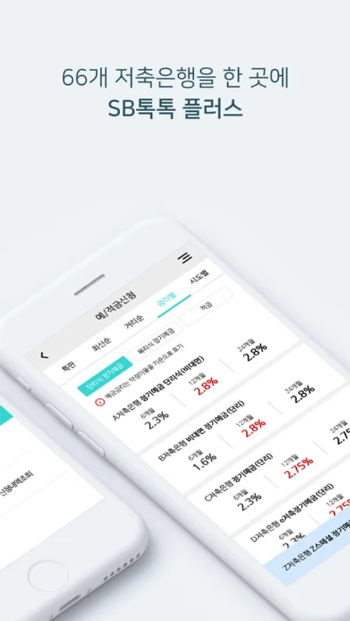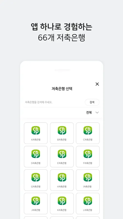 66개 저축은행을 'SB톡톡플러스' 하나의 앱을 통해 만나보세요.