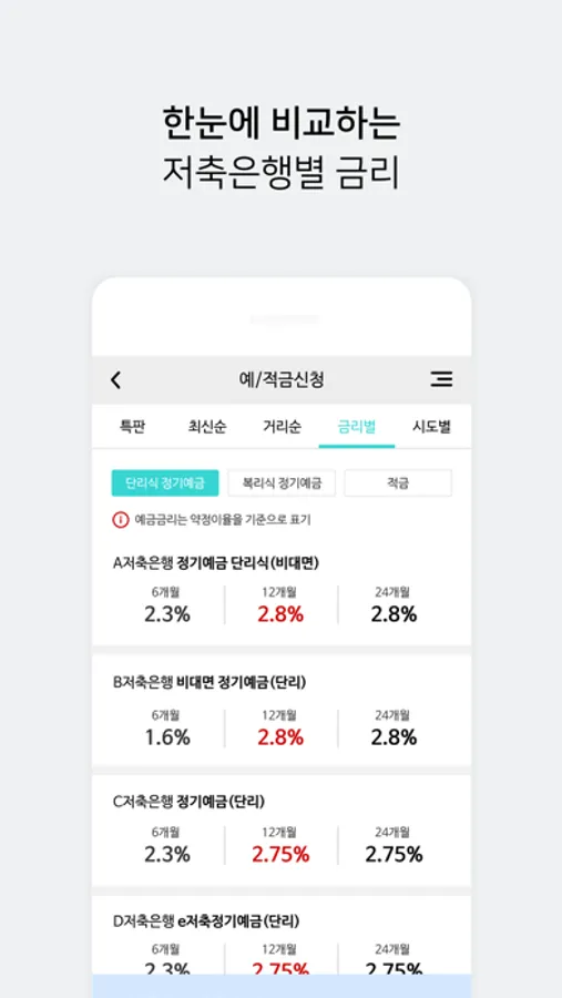 모든 저축은행의 예/적금 금리를 한눈에 비교