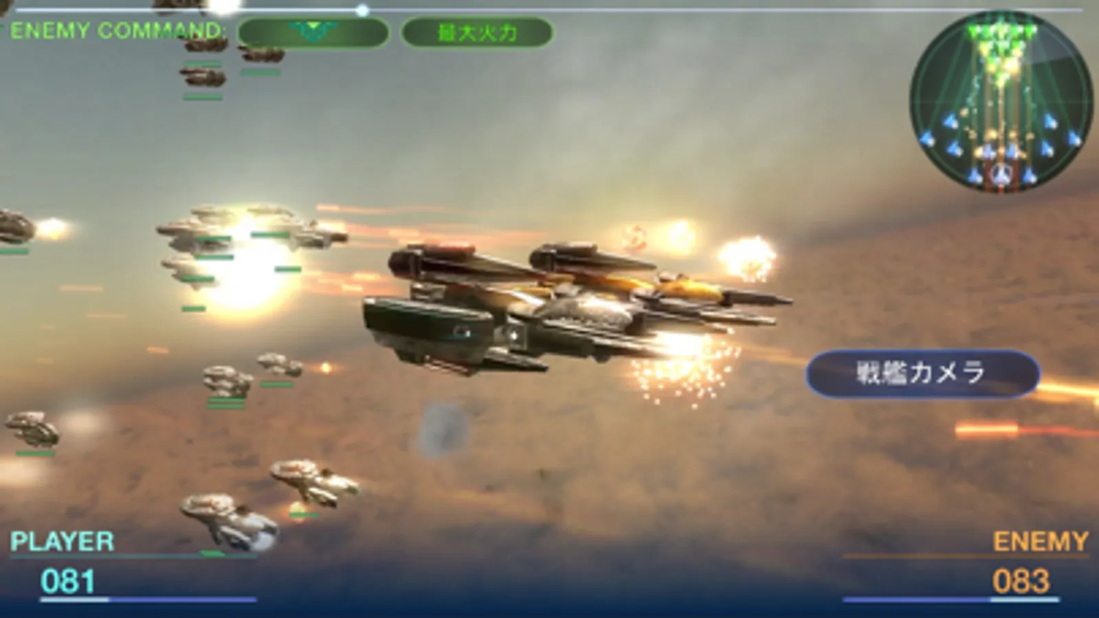 The player directs fleet formation and missile attack with a simple command and aims to destroy the enemy fleet.
