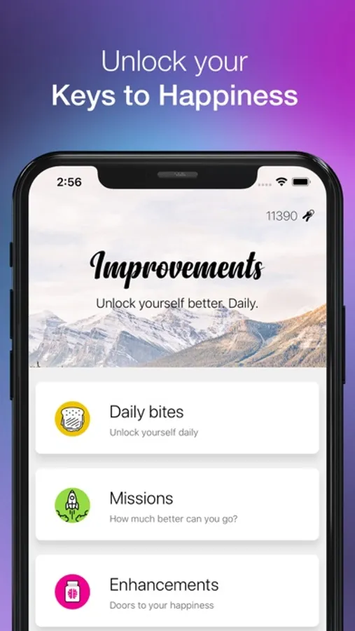 Psychologically proven enhancements to boost your happiness. Unlock them with Keys to Happiness.