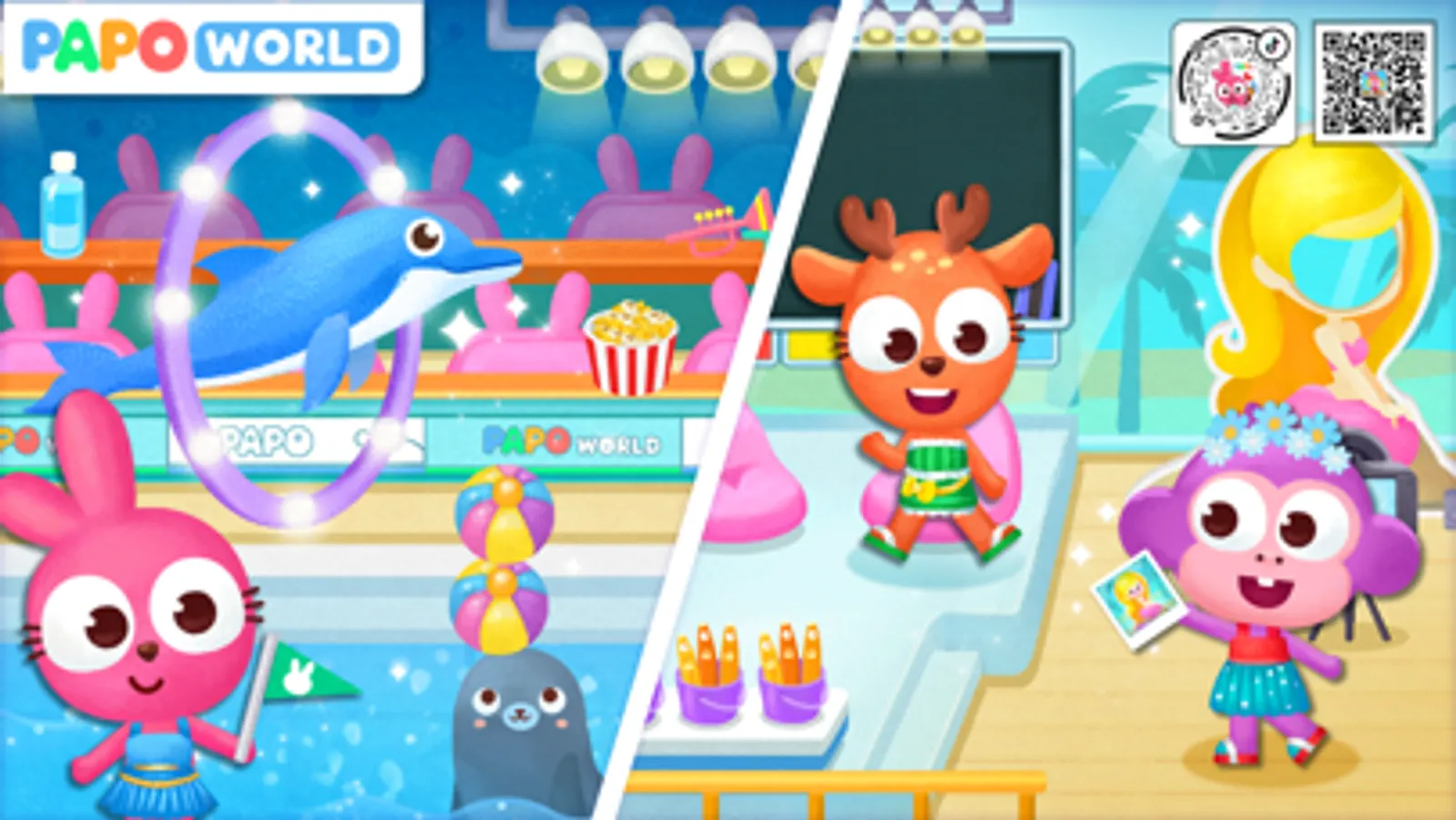 Welcome to Papo Town Ocean Park! This is a perfect place for summer vacation! How about making a huge sand castle? Lying on the beach and have a cold drink? Or a beach barbecue party! The stars in the ocean park prepares a splendid show for you, too!