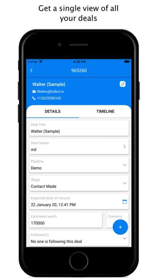 The Bulbul CRM app helps you organise & track your deals while you are on the move. View all the information related to a deal in one place. All Activities, notes, email conversation are stored in a tidy timeline so that you don’t miss anything about a deal.